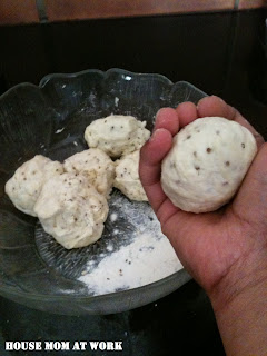 - Divide dough into 6 portions. Now flatten each ball with roller pin into a circle.